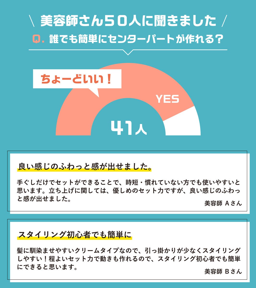 美容師50人中41人が「誰でも簡単にセンターパートが作れる」と回答