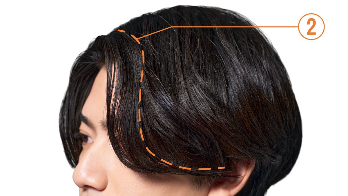 ポイント1.前髪の根元をしっかり立ち上げることで、顔まわりの“立体感”と“抜け感”を演出する。