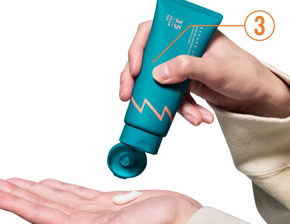 ③チューブ容器でなめらかなクリームの量を調整しながら出しやすく、過剰な塗布によるベタつきを防ぎます。